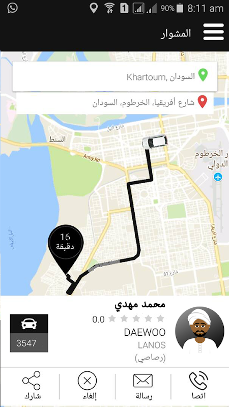 The selected captain's data for the trip will appear and will be accessible through the free messaging service provided by the application.
