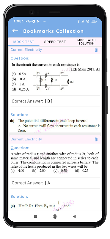 • Aplikasi ini juga mencakup 5 Tes Mock untuk Penilaian Diri. Aplikasi ini menjamin cakupan silabus yang lengkap melalui pertanyaan-pertanyaan untuk kurang lebih semua konsep penting Fisika.