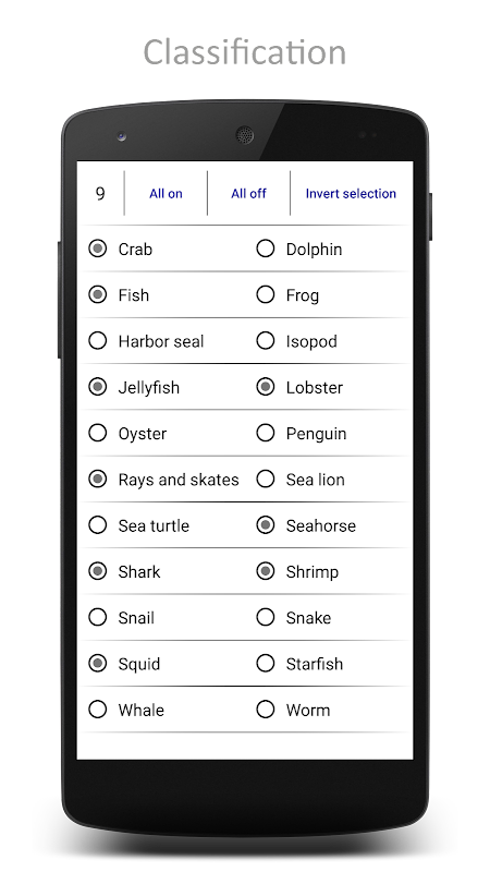 Mengklasifikasikan: Ketika menemukan suatu objek, Pengamat mengklasifikasikannya sebagai; ikan, hiu, cumi-cumi, ubur-ubur, lobster, udang, kepiting ...