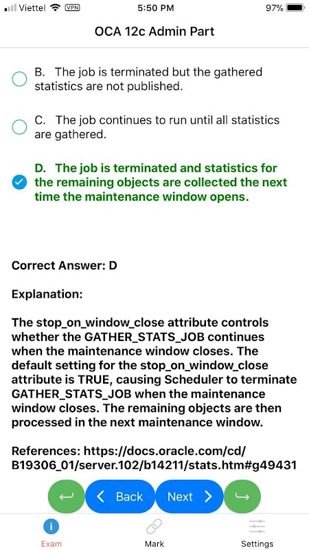 These are questions in OCA Oracle 12c DBA exam (1z0-062). We sure you will pass the 1z0-062 if you practice with this app. Many people passed this exam with 100% questions in this app. You only remember the answers in this app and you don't need to remember hundreds questions in dump :)