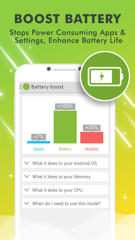 Clean and free up RAM (Memory) of you android device. Boost your phone's speed with improved performance and longer battery life.