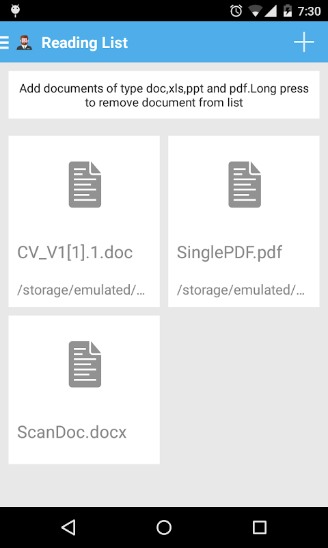 -This will search for the documents available in your SD Card and you can select the ones that you wish to add to reading list