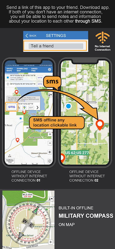 Cukup pilih negara atau wilayah yang ingin Anda jelajahi dan unduh peta luringnya. Aplikasi ini juga menyertakan fitur unik yang memungkinkan Anda memindahkan panah di depan peta dan memilih lokasi mana pun. Anda dapat menjatuhkan pin dan mengirim lokasi melalui SMS, semuanya tanpa memerlukan koneksi internet.