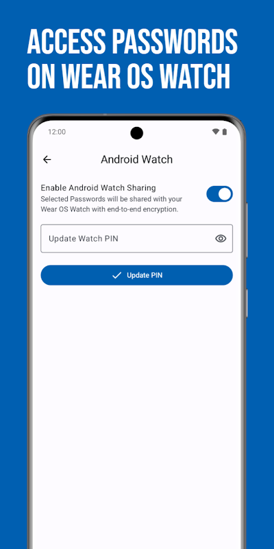 Akses dan bagikan nama pengguna, kata sandi, dan catatan Anda dengan aman di perangkat Wear OS Anda dengan enkripsi menyeluruh. Lihat kata sandi Anda langsung dari jam tangan pintar Anda untuk kenyamanan dan fleksibilitas tambahan. Catatan: Fitur ini harus diaktifkan terlebih dahulu di aplikasi ponsel di halaman Pengaturan dan perangkat Wear OS yang sesuai harus terhubung dan tersedia.