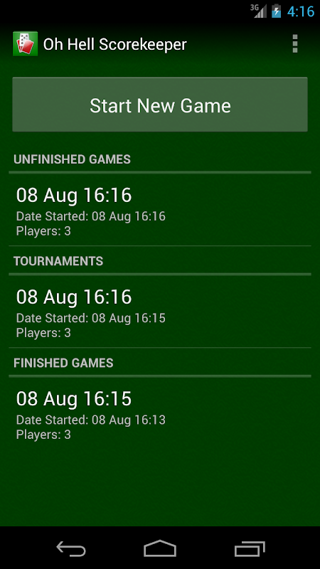 - New theme. Green felt background to look like a card table. This theme makes the app much clearer. This can be changed back to the basic white theme in the settings