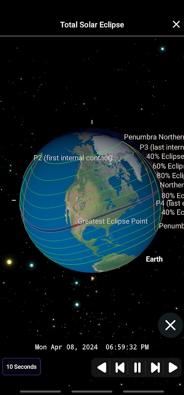 + Simulator Gerhana: Menjadi astronom dan simulasikan gerhana dari lokasi Anda sendiri atau tempat mana pun di Bumi. Gunakan kontrol waktu untuk memanipulasi gerhana, mengalaminya dari awal hingga akhir sesuai kecepatan Anda.