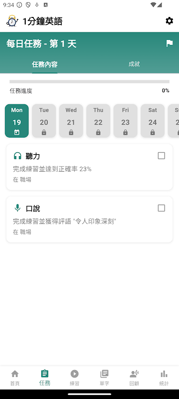 歡迎使用 One Minute English 的首個版本!這款應用程式提供快速且有趣的英語課程,每堂課只需一分鐘即可完成。提升您的詞彙量、練習聽說能力,並每天追蹤您的進步。我們的應用程式易於使用、安全可靠,並尊重您的隱私。立即開始您的英語學習之旅吧!