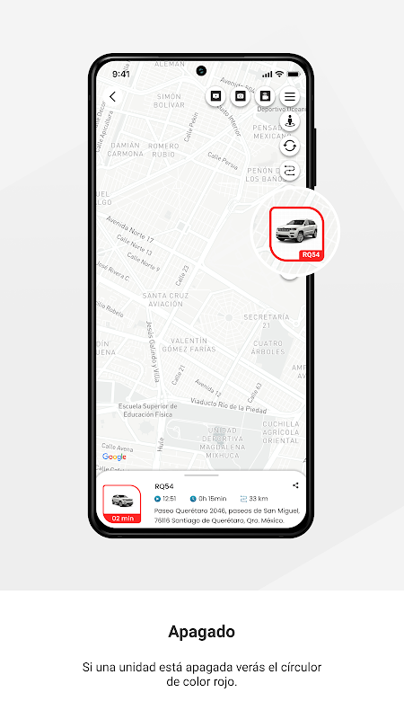 Antarmuka seluler yang mudah digunakan, menangani manajemen daftar unit, mode peta, unit akses di peta.