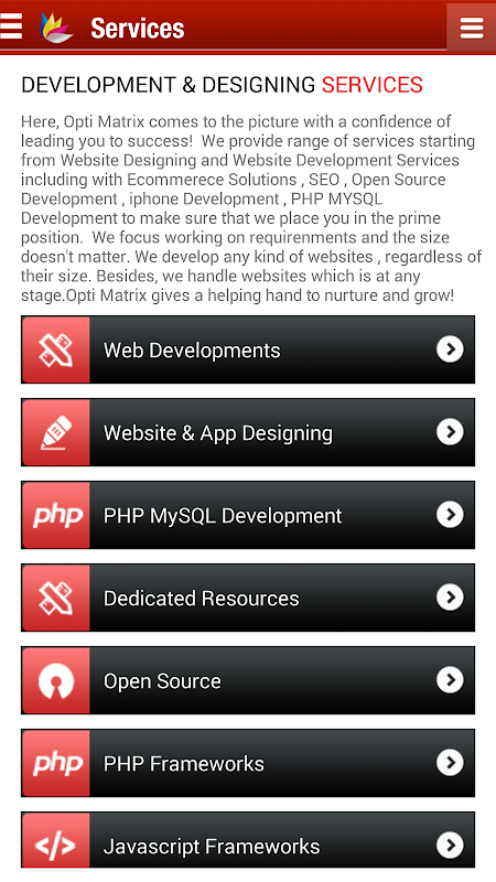 Opti Matrix is one of leading Offshore Software Development, Designing & Outsourcing Company contemplating in the business of providing software services to its clients globally. We specialize in supplying website design & development, 3D & Graphics solutions, Application Development in Open Source, Custom Framework, JavaScript Framework, Social Networking, Mobile & iPhone & iPad SEO & Web Promotion to the World.