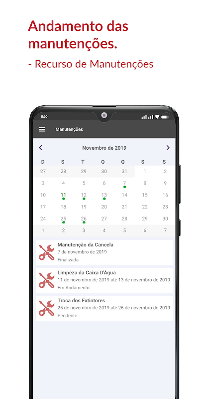 • MANUTENÇÕES: Fique por dentro de quando irá acontecer aquela limpeza da Caixa D'Água e se programe para as manutenções do condomínio. Síndicos se organizam com as demandas do condomínio. Chega de transtornos e falhas de comunicação em manutenções.