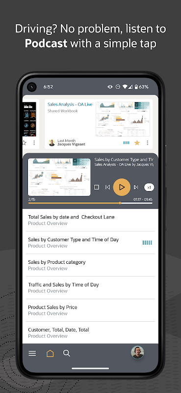 Aplikasi Oracle Analytics menyediakan toko serba ada bagi para pemimpin bisnis dan analis di mana mereka dapat menemukan, membuka, dan berinteraksi dengan semua konten analitik pilihan berkualitas tinggi mereka. Dengan aplikasi Oracle Analytics yang baru, Anda dapat memantau perkembangan bisnis Anda dan segera mengambil tindakan, langsung dari saku Anda!
