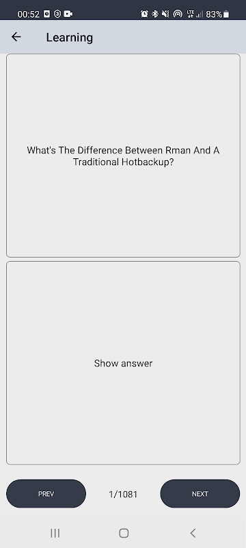 Oracle Dba Belajar Pengerahan adalah aplikasi yang membantu Anda mempersiapkan diri untuk wawancara kerja. Anda akan memiliki pengetahuan yang lebih luas tentang masalah yang terkait dengan Oracle Dba. Aplikasi bersama dengan latihan dengan pasangan akan secara signifikan meningkatkan kinerja Anda selama wawancara, dan Anda akan lebih percaya diri dan mampu bereaksi lebih baik.