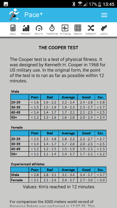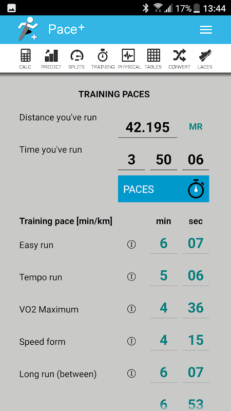 Pace +, kalkulator dan konverter untuk pelari meliputi: