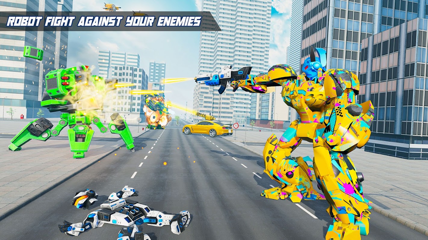 Enter into paintball robot car games: mega robot games for robotic battle and car robot transformation game with extreme fun of mega war robot games and future paintball games 2020. Mega robot driving car vs gangster crime robot transform will destroy the country so be ready for car transformation robot fight with the super robot speed hero to demolish their enemy robot plans in this robot car transforming games. The US police are fighting against enemy gangster robots and saving our city. In this paint ball transform bike robot: car robot game, you have to beat wild enemy robot attack with an evil robot car against super robot car attack. So get ready for extreme robot games action super robot shooting games 2020 with a mega robot attack in war robot car games.
