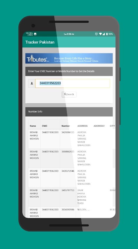 You can find any person's name and CNIC and address in Pakistan.From CNIC to Mobile phone Numbers and address and from Mobile number to CNIC and Address.