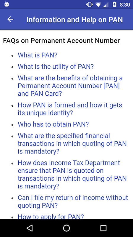 Disclaimer: This app is NOT an official app for PAN. Neither this app or AppYogi Software are related to Income Tax Department or NSDL Ltd. The information provided here is provided based on best effort basis and AppYogi Software does not guarantee or verify the authenticity of the same. AppYogi Software or its affiliates will not be responsible for any harm, loss or damage arising out of using information provided on this application. By using this app you agree to the Terms and Conditions and Privacy policy of the company.