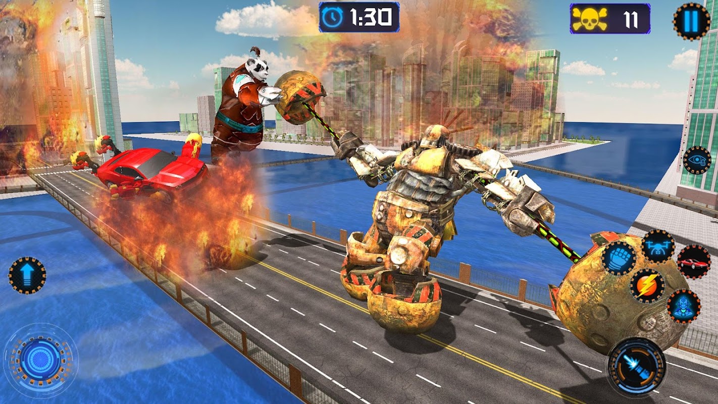 There are different challenging levels of this air robot panda car game where your real robot fighting skills will be tested. You are on the mission to eliminate the evil robots and save the city in this robot shooting car transformation robots game. Be prepare and smart in robots battleground because the verses robots are very strong and they can give to a tough time in survival. In robot transformer games, you always love to avail of car driving, car shooting, multiple war powers and thrill of real battle. So, this police panda robot shooting robot adventure game contains all these features of robot transformation into car shooting and robot shooting with smooth and addictive gameplay. Let’s download and play this adventure robot transforming and shooting a new free game of 2020.