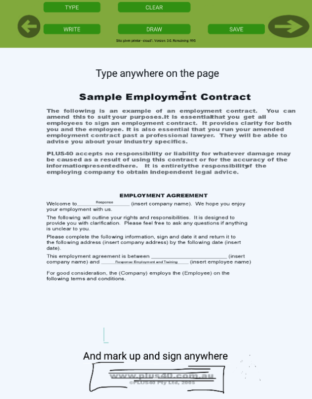 You could simply call the office, they print you a document, it appears right there on the tablet, and the user can fill in the paperwork and sign right there. No driving back to the office, no fooling around with template systems, it is just a straight print job, but instead of printing onto paper, it goes direct to the tablet.