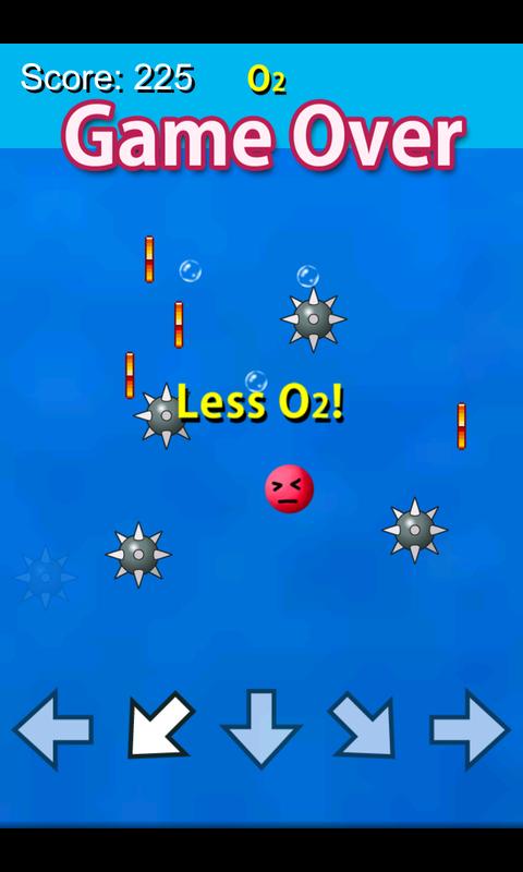- Saat ia menyelam, meteran oksigen (O2) berkurang. Permainan berakhir jika meteran habis.