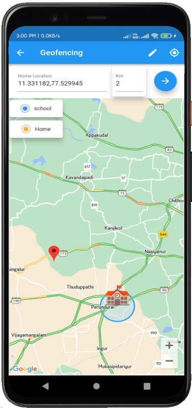 This app is for School Parents to track School Van or Buses live location and gives notification to the parents when the vehicle reaches home and school location.