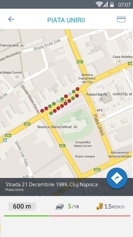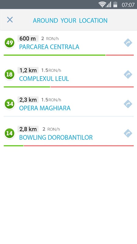 Get parking recommendations while driving, based on your location. The suggestions are generated based on proximity, number of available spots and price.