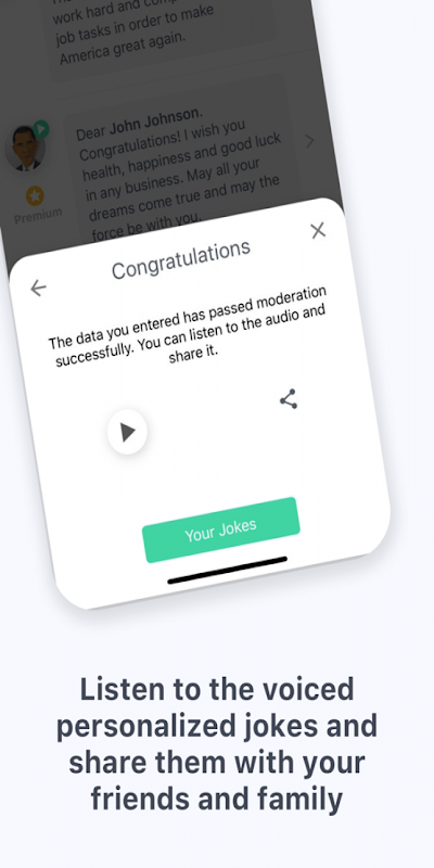 Prank your friends and family members with audio messages where recognizable celebrities’ voices speak to them by name to congratulate, praise, or say something funny information.