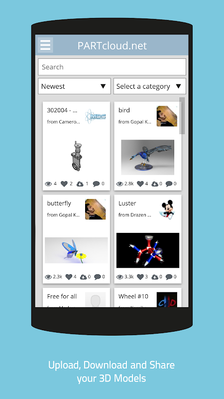 PARTcloud.net adalah Gratis 3D Printing & Sharing Community terkemuka untuk menemukan dan berbagi Desain 3D dicetak dan bagian lain dari bidang teknik.