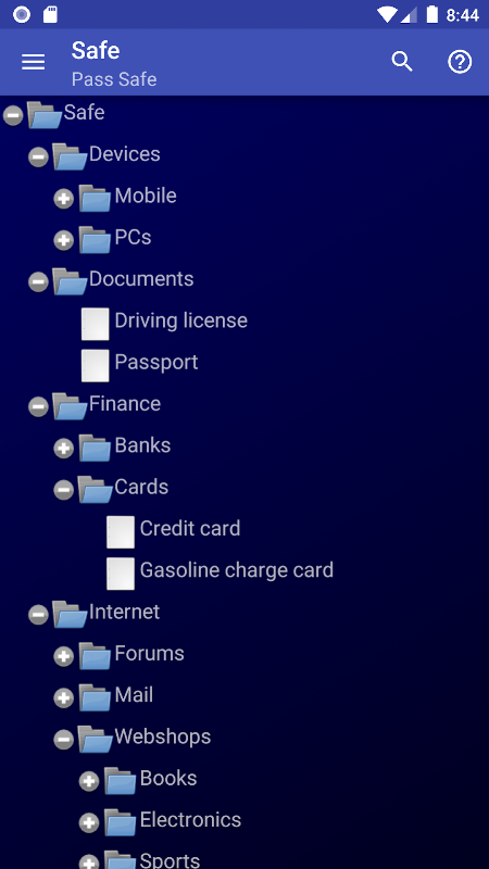 Kesulitan mengingat semua kata sandi, nama pengguna, akun, nomor akun, id pelanggan, kode keamanan, pengidentifikasi, pin? Pass Safe dapat digunakan untuk menyimpan semua kata sandi, nama pengguna, akun, dll. Yang perlu Anda ketahui untuk memiliki akses adalah satu kata sandi utama. Data Anda disimpan terenkripsi (sandi AES-256 digunakan) hanya di perangkat Anda.