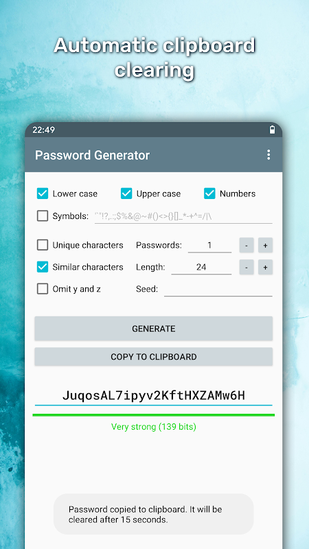 Password Generator adalah aplikasi open source untuk menghasilkan kata sandi aman menggunakan pseudo-random number generator yang aman secara cryptographically aman. Anda diberikan opsi untuk memilih karakter mana yang harus diisi kata sandi Anda atau Anda dapat memilih rangkaian simbol khusus Anda. Menghasilkan kata sandi dengan Kata Sandi Generator cepat dan mudah, cukup periksa opsi dan tekan tombol.