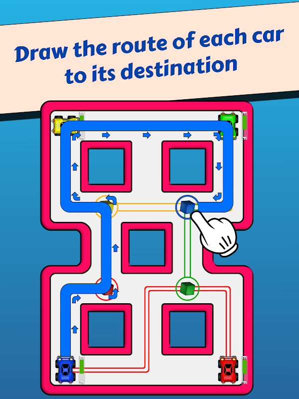 Gambarkan rute setiap mobil ke tujuannya dan lepaskan untuk memulai keseruan.