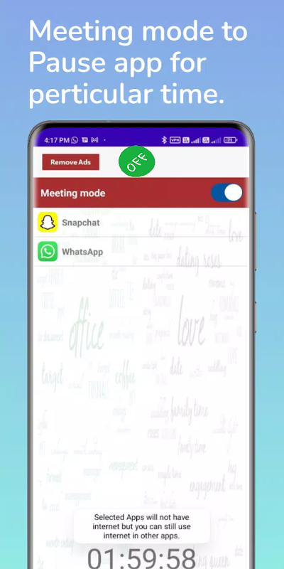 Kami hanya mengeluarkan aplikasi pilihan Anda dari internet sehingga Anda tidak perlu mematikan wifi/data seluler.