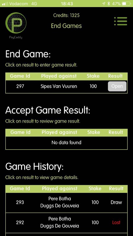 Anda juga dapat menggunakan aplikasi ini untuk mencatat skor rekor kemenangan dan kekalahan karir Anda melawan teman-teman Anda dan melihat bagaimana Anda membandingkannya dengan pengguna PayCaddy global.