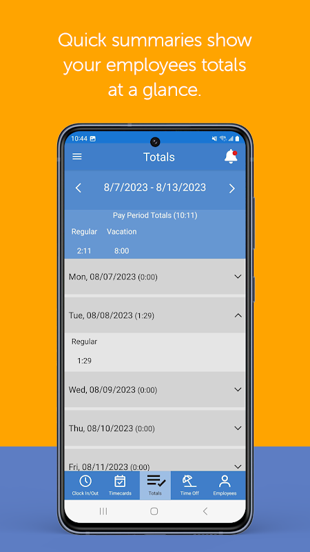 • Karyawan dapat masuk dan keluar dari komputer mereka, jam waktu fisik (dijual terpisah), atau menggunakan aplikasi seluler ini di ponsel cerdas atau tablet mereka