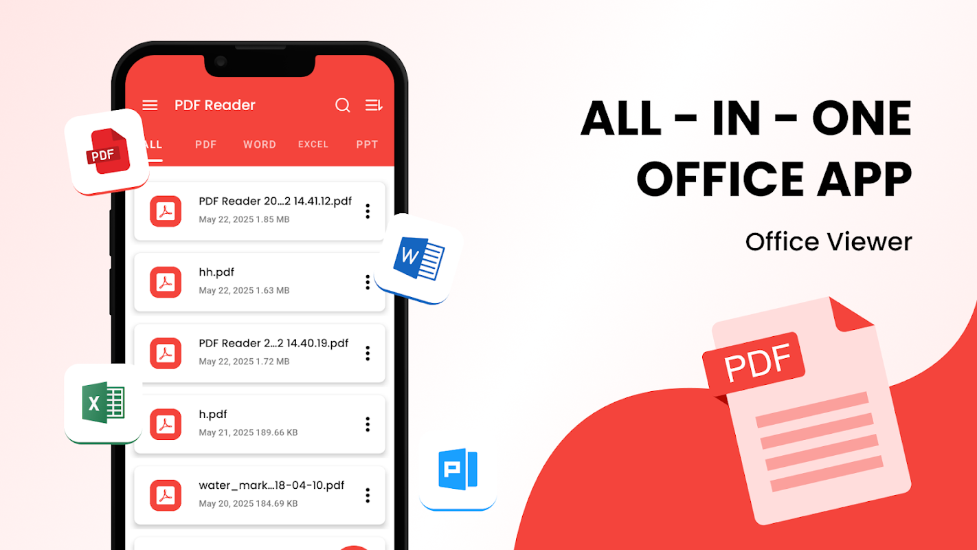 Buka, lihat, dan kelola semua file Office Anda dalam satu aplikasi yang ringan dan mudah digunakan. Baik itu PDF, dokumen Word (DOC/DOCX), lembar Excel (XLS/XLSX), atau PowerPoint (PPT/PPTX), aplikasi ini menangani semuanya dengan cepat dan akurat.