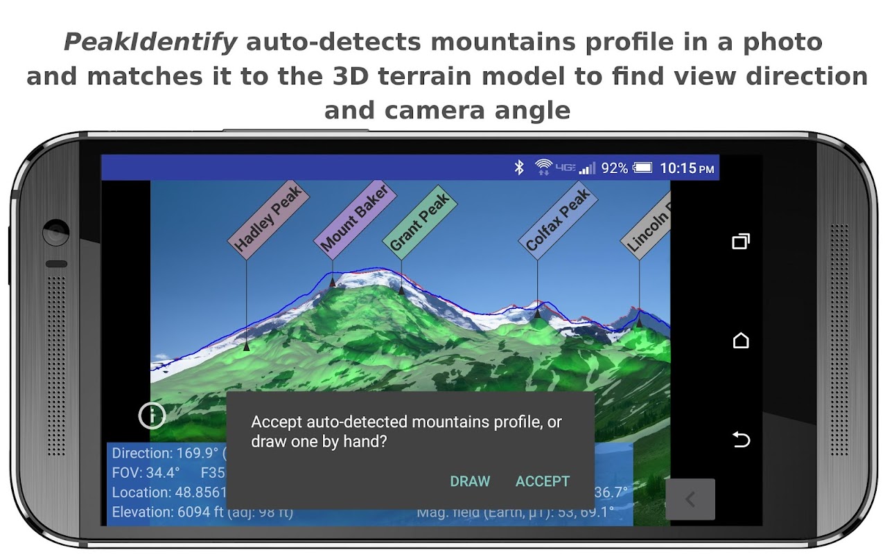 Mengidentifikasi puncak gunung di foto Anda dan sekitar Anda