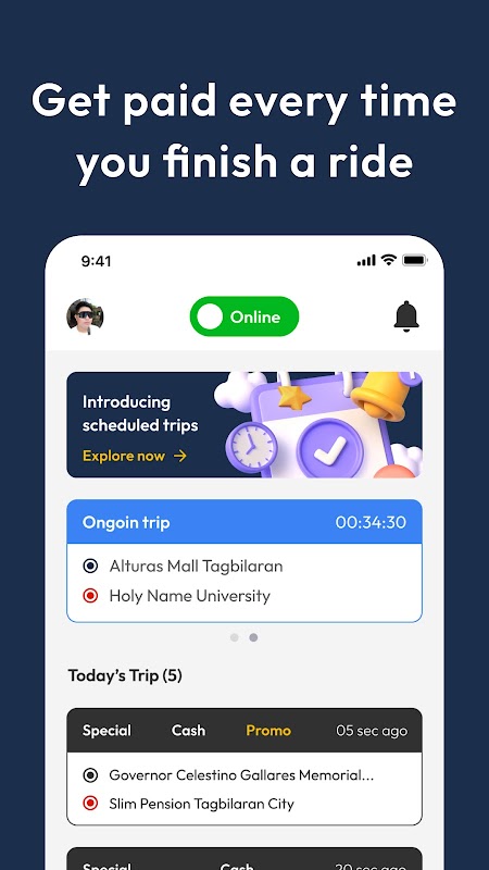 Berkendara dan dapatkan penghasilan dengan Aplikasi Pedi dengan menerima permintaan perjalanan dari pengendara kami. Bersiaplah untuk mengatur jadwal Anda sendiri dan berkendara sesuka Anda. Terima penghasilan Anda dari setiap pemesanan yang diselesaikan dan dorong kesuksesan Anda.