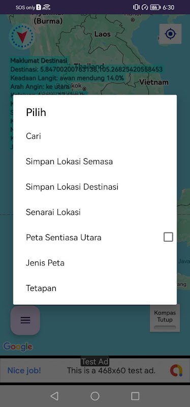 Pedoman penangkapan juga menyediakan kondisi cuaca dan prakiraan untuk tujuan memancing. Pengguna dapat melihat kondisi langit, kecepatan angin, dan prakiraan cuaca dua hari melalui bendera yang ditampilkan pada peta. Namun, penting untuk dicatat bahwa akurasi informasi kedalaman laut aplikasi ini mungkin bervariasi, karena mengandalkan server gratis.