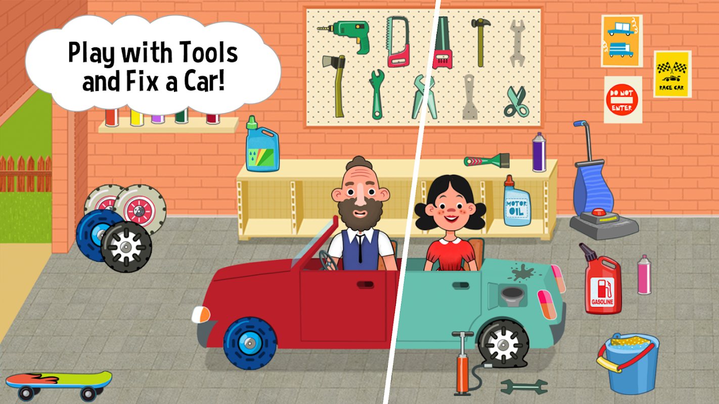 • Ciptakan kisah rumah bahagia Anda dengan ratusan barang dan mainan. • Kamar bertema dengan cermat menggambarkan lingkungan kehidupan nyata: memasak di dapur, memperbaiki mobil di garasi, bermain di halaman belakang.