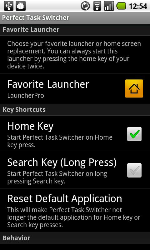 * Press your HOME key a second time to switch to your default launcher (with support for LauncherPro, ADW, and others)