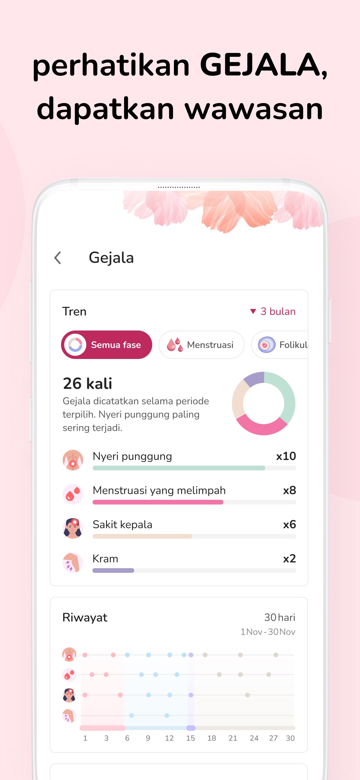 Anda juga dapat melacak perubahan dan gejala selama masa perimenopause, seperti hot flashes, keringat malam, perubahan suasana hati, dan siklus tidak teratur. Mode ini membantu Anda memahami tubuh dengan lebih baik, memantau hormon, serta memberikan wawasan dan pengingat yang dipersonalisasi. Dengan fitur ini, aplikasi menjadi pelacak kesehatan wanita yang lebih lengkap, mendukung Anda dalam masa transisi menuju menopause.