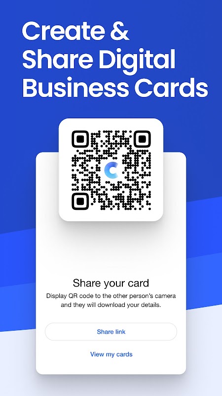 • Buat dan bagikan kartu nama digital Anda sendiri dan simpan dalam CRM Anda, bagikan dengan mudah, bahkan melalui widget.