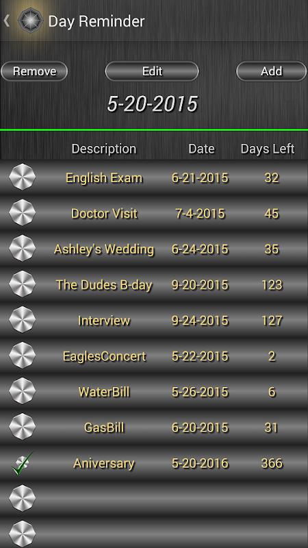 ✧ Hari Reminder - Memungkinkan Anda menambahkan dan menyimpan tanggal penting dan akan menampilkan hari tersisa dari tanggal saat ini.