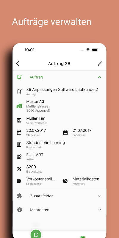 Laporan dapat dicatat dengan cepat dan cepat - baik sebagai pesanan atau sebagai proyek dengan layanan parsial atau sebagai pesanan layanan. Prosesnya sangat mirip dengan Proffix, sehingga pengguna Proffix dapat dengan mudah menemukan jalannya.
