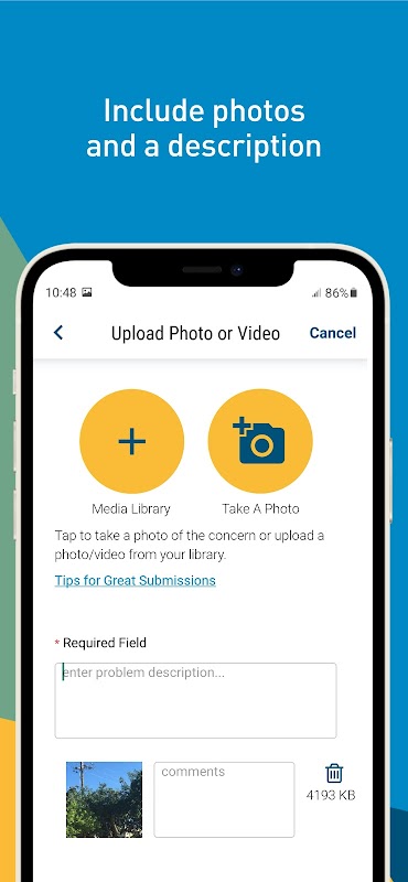 Dengan PG&E Report It, Anda dapat mengirimkan foto-foto kemungkinan masalah keamanan kepada kami.
