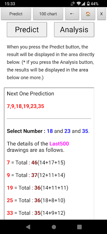 Saat Anda mengklik tombol analisis, Anda dapat memeriksa kesesuaian setiap nomor yang dipilih dengan nomor lainnya dengan pengaturan yang sama seperti saat melakukan prediksi.