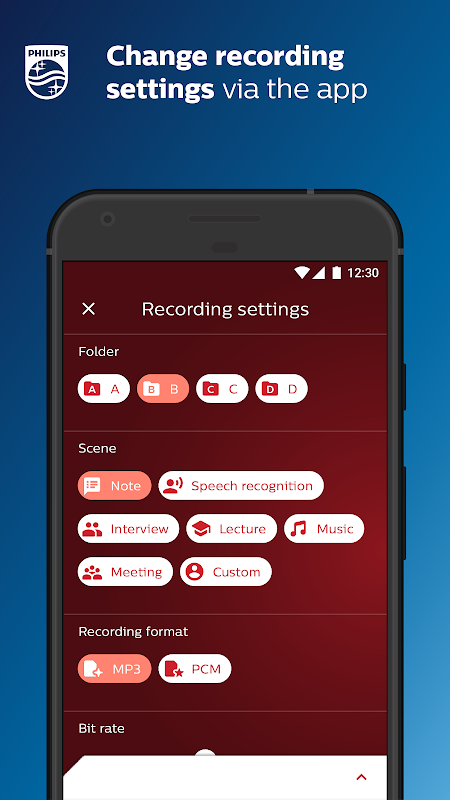 Dapatkan kekuatan untuk mengontrol Perekam Audio Philips VoiceTracer Anda menggunakan ponsel cerdas Anda dan bagikan file audio Anda dengan mudah dan cepat dengan kolega, teman, dan keluarga Anda.