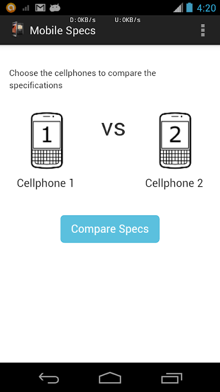 This simplistic app lets you compare specification of one mobile phone with another phone.