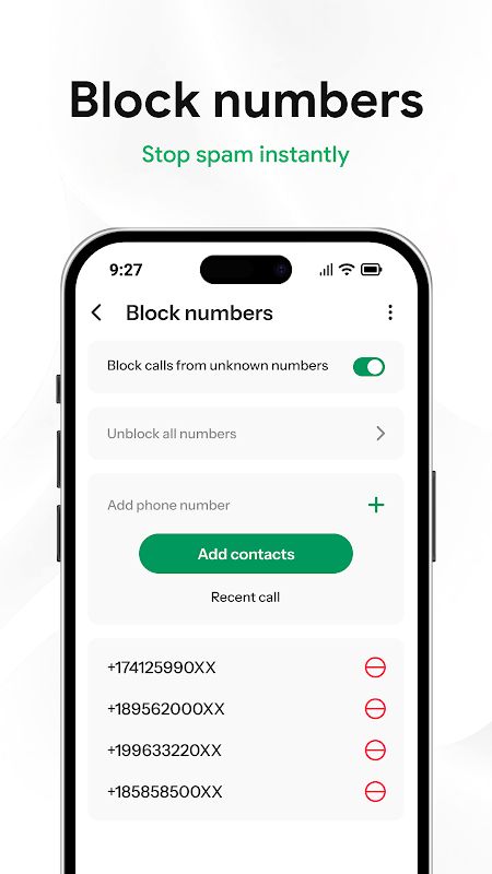 * Blokir Nomor: Blokir panggilan telepon yang tidak diinginkan dan kelola kontak telepon yang diblokir dengan mudah.