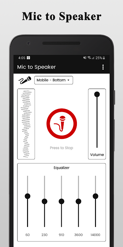 Aplikasi Mikrofon Telepon ke Speaker Bluetooth mengubah ponsel Anda menjadi mikrofon Bluetooth pribadi Anda. Anda dapat menggunakan aplikasi mikrofon ke speaker ini dalam beberapa cara seperti pengumuman mikrofon dari ponsel ke speaker atau sebagai karaoke untuk menyanyikan lagu dengan menggunakan mikrofon ponsel cerdas Anda yang terhubung dengan loudspeaker bluetooth. Aplikasi Mic Speaker ini juga menyertakan Equalizer untuk menyetel suara Anda. Ini juga sangat mudah untuk menggunakan aplikasi yang mengirimkan audio dari mikrofon Anda ke loudspeaker menggunakan ponsel Anda sebagai Mikrofon yang terhubung dengan speaker apa pun.
