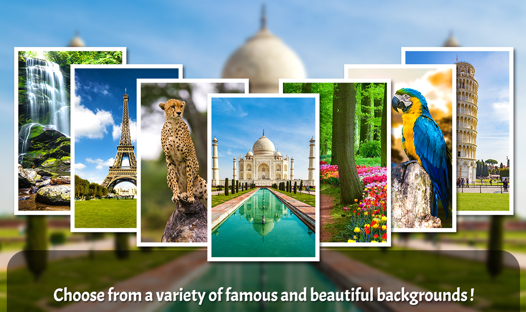 Create your own photos with adventurous and awesome background images. Make your photos stunning and have fun in switching to cool backgrounds.